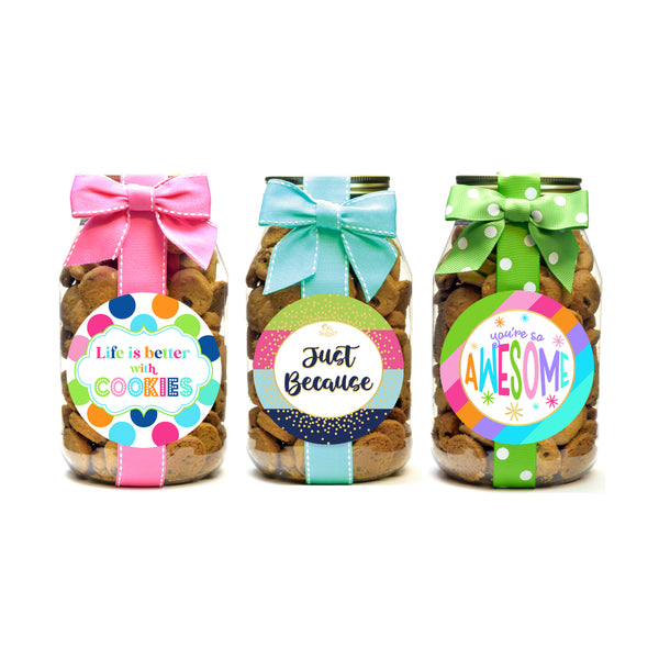 In 3.5 oz & 7 oz sizes - these are perfect for snacking or gifting your favorite cookie flavors.