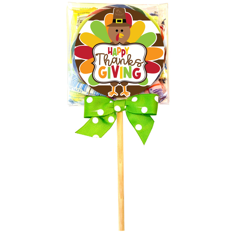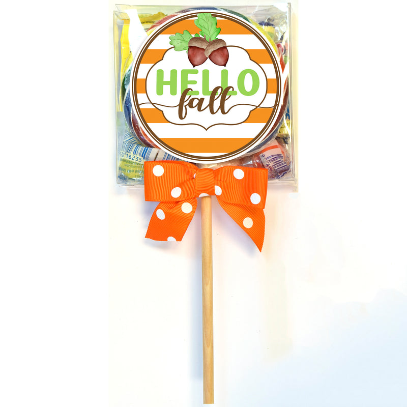 Our Mix Up Pops are always a crowd favorite. We take a 3" Whirly Pop and put in in a clear box with assorted wrapped candies. To top if off, we add a cute label and matching bow. Choose from 8 fun designs!