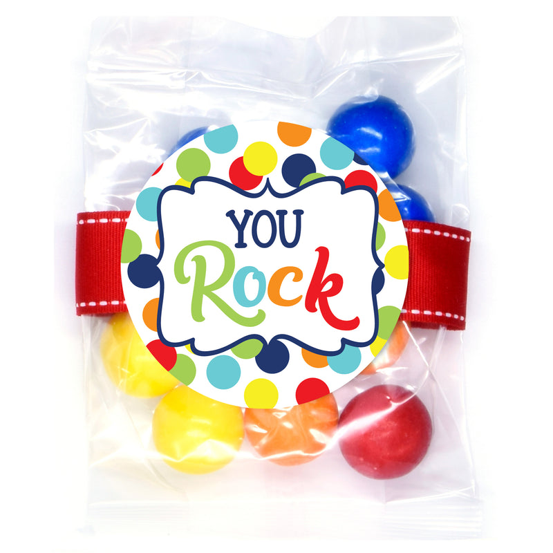 Depending on your candy selection (some candy weighs more than others) the plastic pint jar holds between 9oz - 13oz of candy. The regular treat bag holds 4oz - 6oz of candy and comes with a twist tie bow. The small treat bags have 2oz - 3oz of candy each. The jars and bags are decorated as shown.