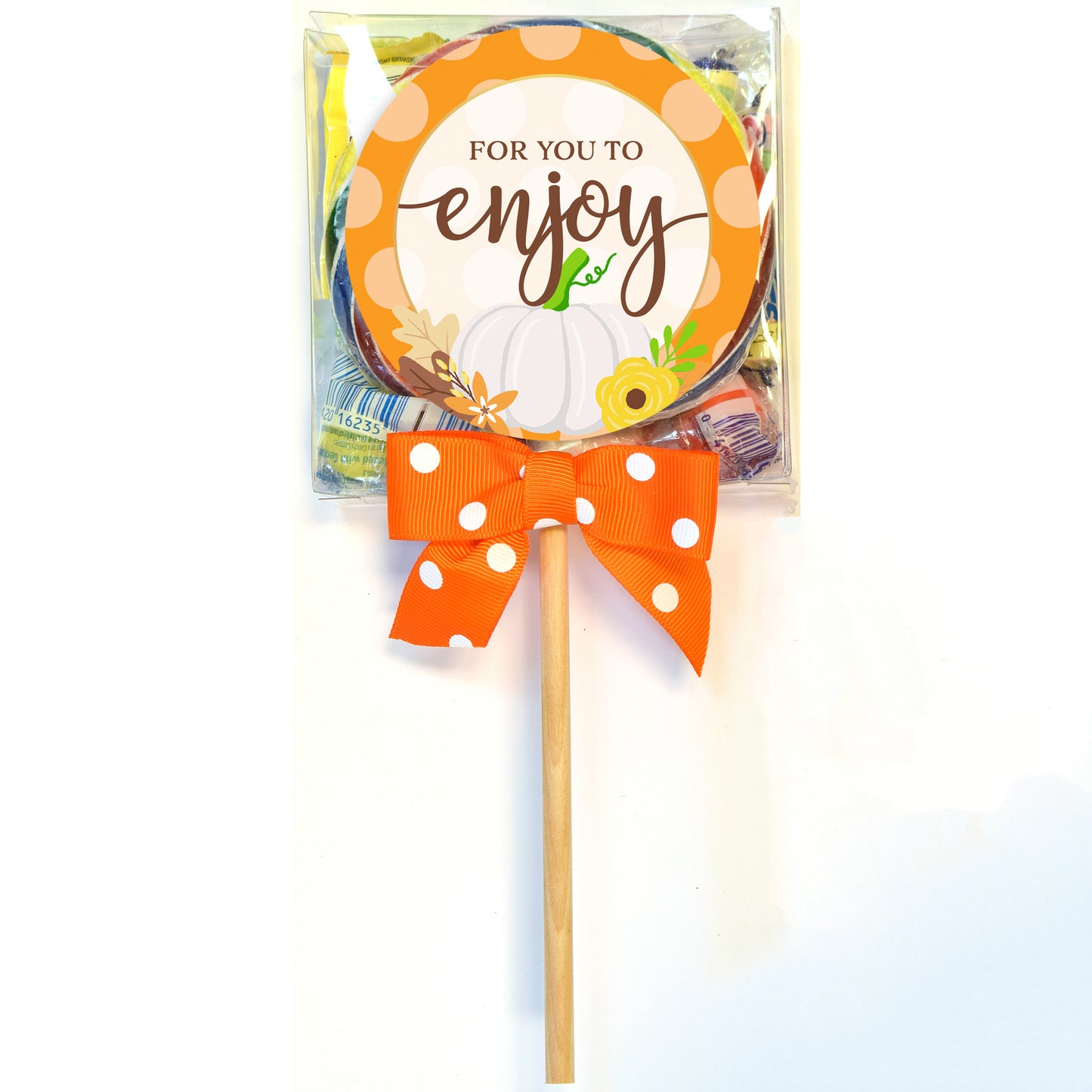 Our Mix Up Pops are always a crowd favorite. We take a 3" Whirly Pop and put in in a clear box with assorted wrapped candies. To top if off, we add a cute label and matching bow. Choose from 8 fun designs!