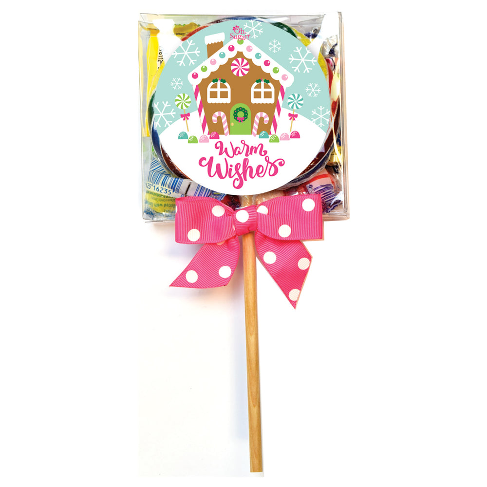 Our Mix Up Pops are always a crowd favorite. We take a 3" Whirly Pop and put in in a clear box with assorted wrapped candies. To top it off, we add a cute label and matching bow. Choose from 10 fun designs!